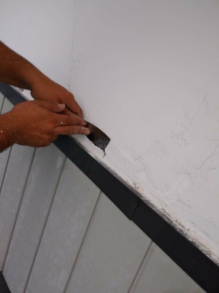 小壁は以前の塗装がかなり剥がれていたので、浮いている部分は撤去し、
